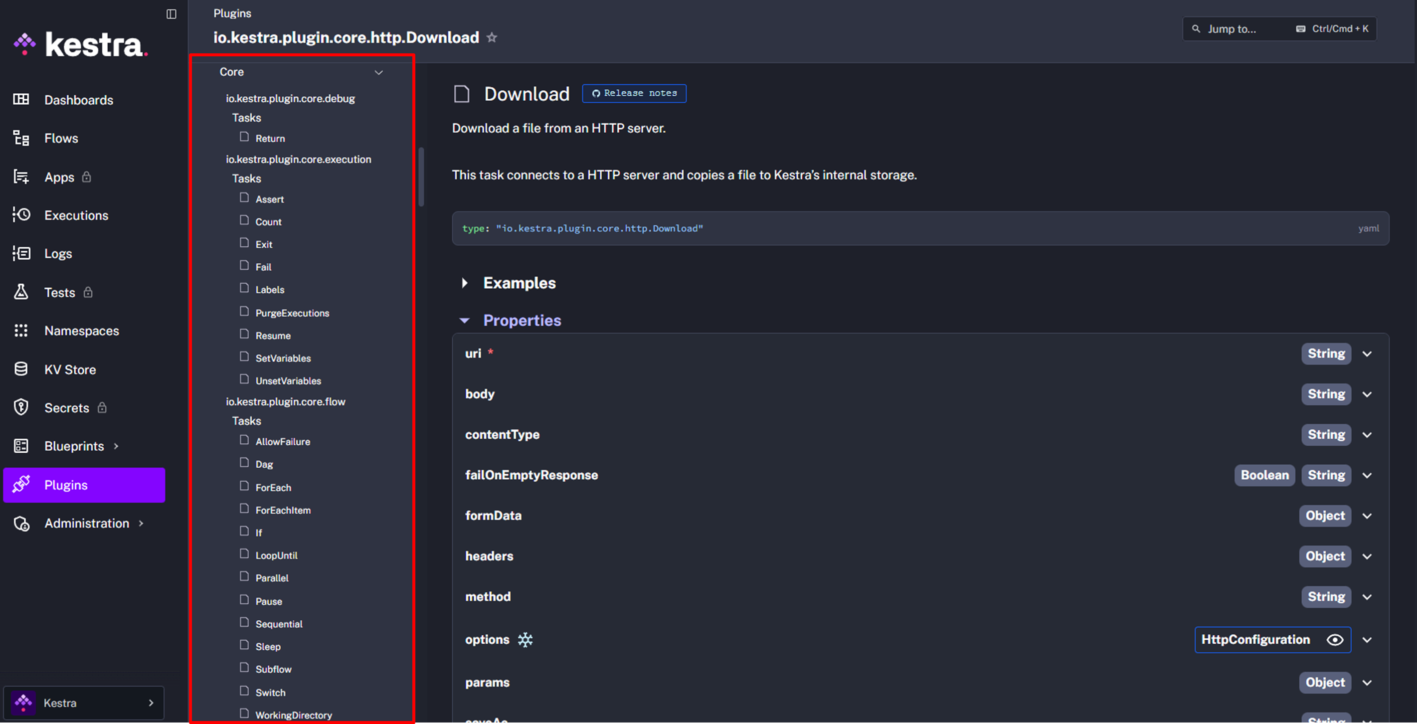 들어가보니 io.kestra.plugin.core.http.Download라는 항목이 나타난다.