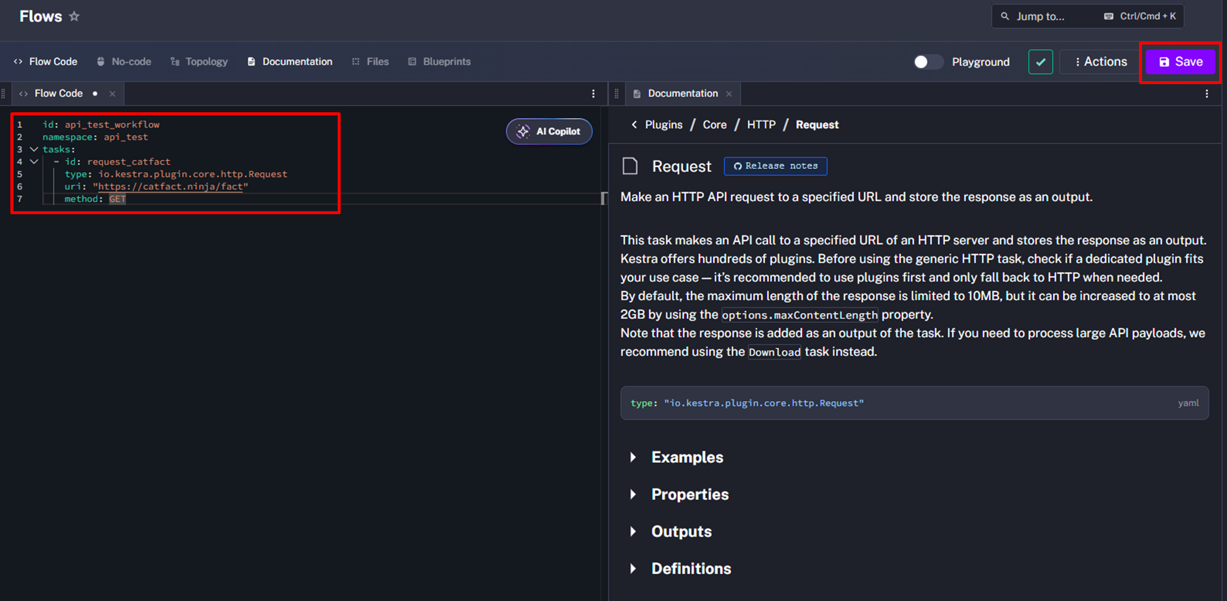 kestra에서 API 호출 작업을 수행하는 워크플로우를 생성해보자
